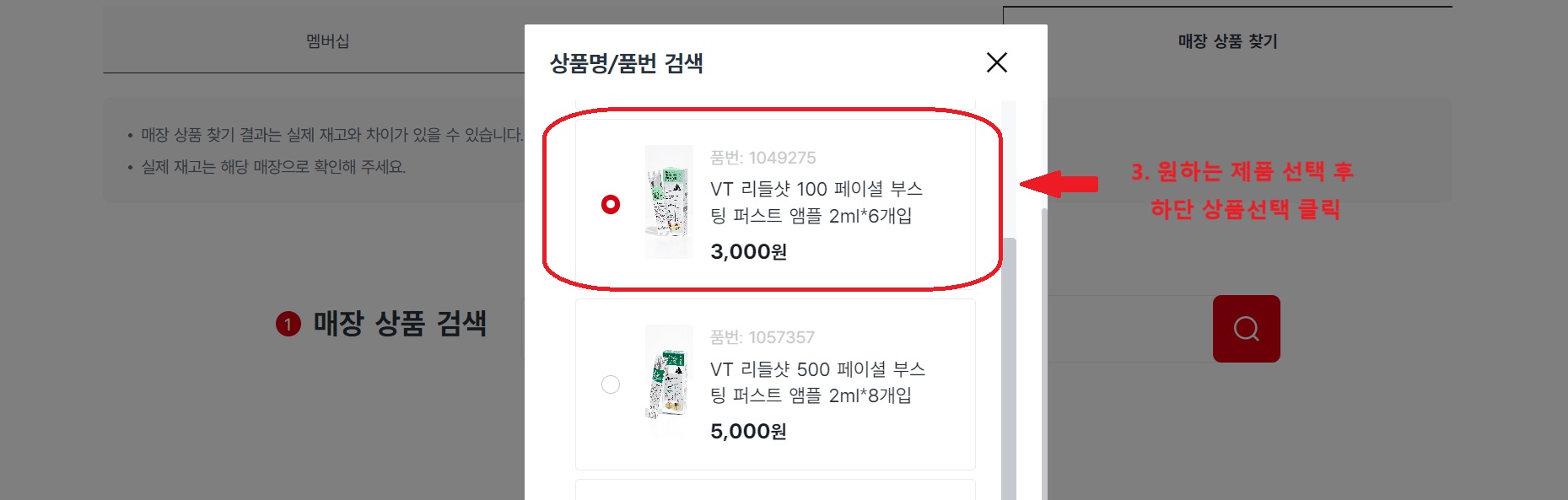 ✓ 세번째, 위쪽 가운데의 매장 상품 찾기를 클릭합니다