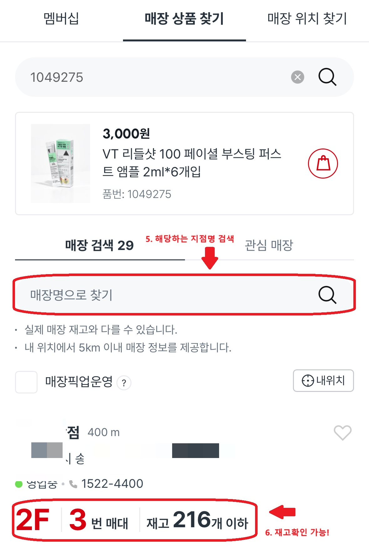 ✓ 마지막, 구매하려는 제품을 클릭, 매장명으로 찾기에 검색 or 하단의 내 위치 기준으로 가까운 매장 재고를 확인합니다!