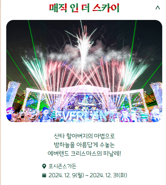 - 크리스마스 퍼레이드: 에버랜드의 마스코트와 산타가 함께하는 퍼레이드