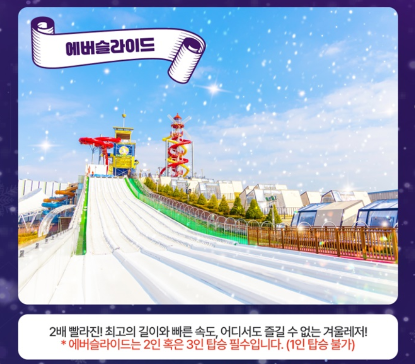 - 눈썰매, 북유럽 테마 포토존, 아이스링크 등 다양한 겨울 놀이 시설 제공